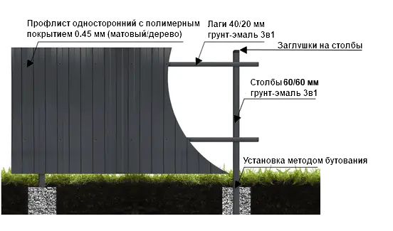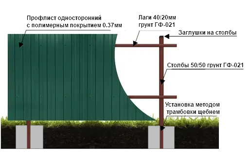 Вариант "Стандарт" - это классический вариант забора из профлиста (профнастила).