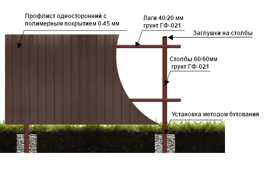 Вариант "Эконом" - это самый бюджетный вариант забора из профлиста (профнастила).
